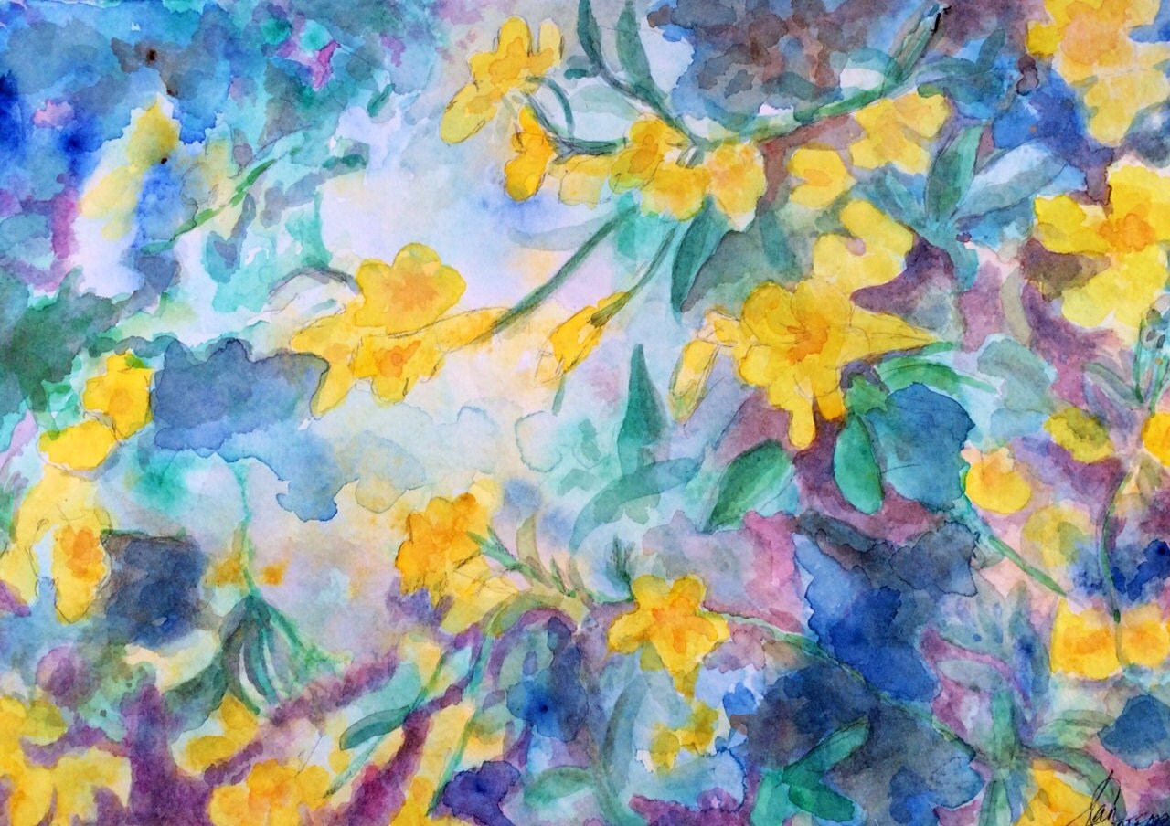 Jasmine Flowers art prints watercolor painting Limited - watercolor blue watercolor jasmine flower drawing